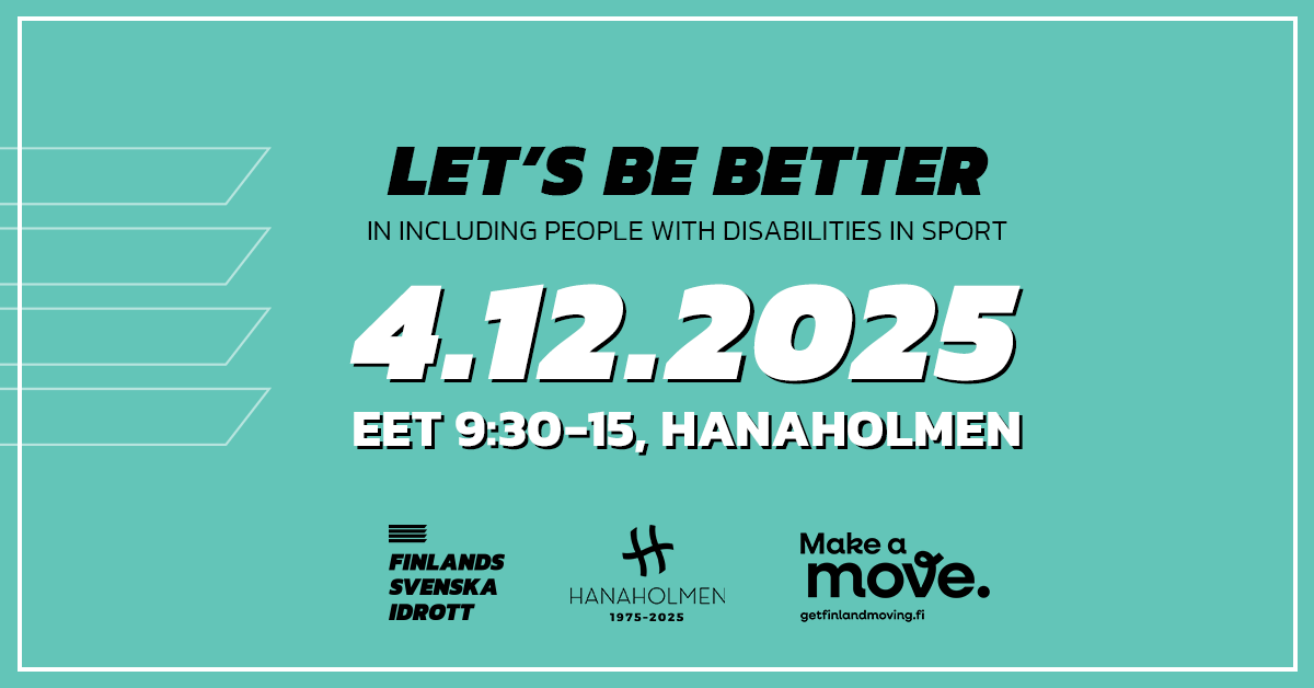 Den 4 december samlas paraidrottare, experter och idrottsentusiaster på Hanaholmen i Esbo (och online) för att diskutera inkludering, tillgänglighet och jämlikhet inom idrotten. Seminariet Let’s Be Better bjuder på inspirerande talare och konkreta exempel på hur vi kan skapa en mer inkluderande idrottsvärld.